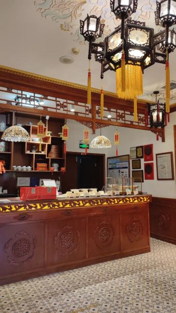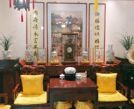 富华斋饽饽铺的布局颇具古典气息,明黄色的帷幔、书法字画、古铜狮都很考究。这里还原了祖辈们流传下来的手艺,当年满清贵族们享用的糕点得以再现。