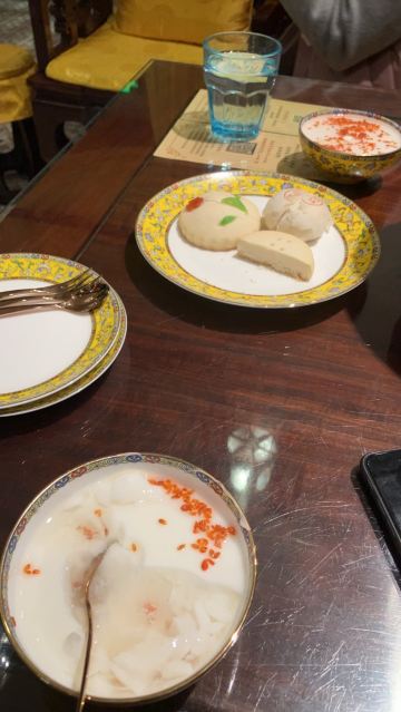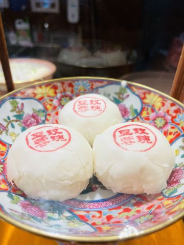 伊來两家网红点心铺脸对脸,有时 红花点心局 排队时间长点,有时富华斋久一些,堪堪打成平手不分伯仲。就我个人口味而言,还是富华斋更胜一筹。 孙尼额芬白糕 这个我愿称为蒙古司康,那绵软的口感,奶香悠远的味道,直令人欲罢不能。我从来不吃没馅儿的点心,但最爱的这款恰恰没馅儿,造化弄人啊~ 葡萄酥饼 奶和葡萄是分不开的,绝对不能分开,它俩天然就应该在一起,再配上清脆的酥皮,真是一点渣儿都舍不得掉啊! 其它点心也都好,只是没有这两款惊艳。 [薄荷]环境: 老北京的物件随处都是,房屋结构是北平同款,门前的院子守着护国寺大街有些嘈杂,却也把气氛烘托起来了,只是顾客太多轻易占不到位子,每次来都是买完就走有点遗憾。 [服务铃]服务: 这么多人还能有个笑模样挺不错了,叫餐的方式循规蹈矩按部就班,唯一不好是在原有订单上加餐又得重新等一波,这点上美团需要修改设置才好。目前没有太好的办法,只能是一次性点足了。