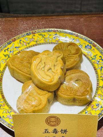 伊來端午节特色食物:五毒饼。今年算是买到了,前三年因为众所周知的原因,真是买不到啊🙁 [薄荷]环境: 这氛围说宫廷有点大了,充其量算是京城的小康家庭,反正我是不怀旧,我们家又没称过这样好的平房和院子,上哪共鸣去。 [面包]原料: 用的都是老方子,前店后厨,主打一个新鲜,用料也实在也讲究,所以虽然小贵也认了。 [糖果]口味: 五毒饼是这个节气的特色糕点,但其实我还是喜欢白糕,按理说没有馅儿的点心我是不喜欢的,唯独这款我是情有独钟。不得不说,草原人民拾掇奶制品的配方真是有两下子。 [樱花]性价比: 用料和味道值这个价儿,中规中矩吧。