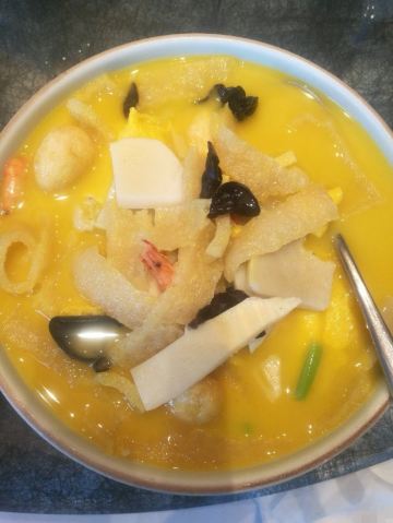 西芹辣吵小百合路过在此朋友聚餐,地方不是很容易找,在丽都广场的院子里深处,门口朝北,大门还坏了。主打苏浙菜品,其中河鲜菜品算是比较出众的,最近才有认知,其实苏浙菜并不清淡,味道也比较重,甚至比较油腻。内部装修还不错,古色古香,实话讲太师椅不是很舒服,餐具器皿都是定制的,很雅致。 点标准菜品,狮子头,可以通过这道菜看看手艺到底如何,清汤微咸,丸子做得还是够专业的,口感润,味道鲜,48元一盅,算是物有所值。 河豚现在都是养殖的,可以放心吃。这家烹制得还好,肉质口感确实非常细腻,少刺,无论口感、味道比鲈鱼强很多,个头不大,也就一手掌那么长,两个人用餐一条的量也是够的,感觉胶质很多,美中不足,就是太咸了,必须要配送的米饭,整体做法有点像徽州臭鳜鱼做法。 干丝味道好,配上汤汁很鲜美入口,刀功也不错。蚌肉炒时蔬太失败了,因为味道太咸了。 蟹黄汤包很一般,感觉馅料有点柴,还有就是配的蘸汁有一股奇怪的味道,有点遗憾。 葱香拌面还是很受欢迎的虽然有点油腻。充值送的小排味道很香,一股梅子的味道,只是肉质太柴了,有点塞牙。