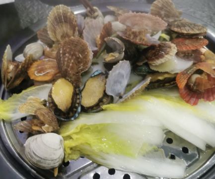 二人套餐,)海鲜很新鲜 白一筐蛤螂量很大蜂子肉很饱满 跟虾一起先蒸熟出锅后再蒸鲍鱼和生蚝浇蒜泥汁,黄花鱼蒸熟后浇生抽,印 肉质非常鲜嫩,最后是蒸鱼饺子,锅底的大米海鲜粥也熟透了,吃惯重口味的人可能觉得蒸汽海鲜很清淡 但食材最美味的不正是它的原味吗