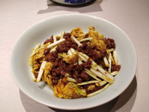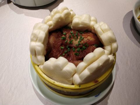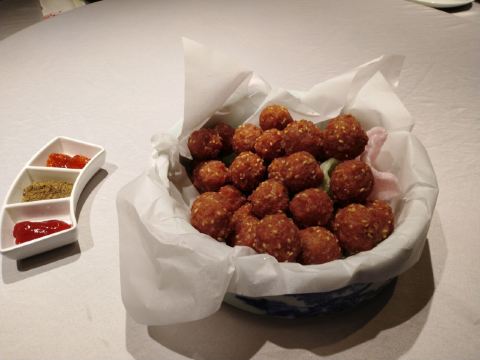 北平盛世是京味菜馆,我们特意点了干炸丸子、醋溜木须、爆三样、小笼粉蒸肉等菜品。厨师的水平不错,干炸丸子外酥里嫩,醋溜木须里面的肉片滑嫩咸香,酸味适中,爆三样处理到位,没有脏器的味道,欠汁调味也不错。每道菜都好吃,色香味俱全。如果爆三样量再多点儿,粉蒸肉再瘦点儿,就更好了。店内干净整洁,喜气洋洋,充满了老北京风情。