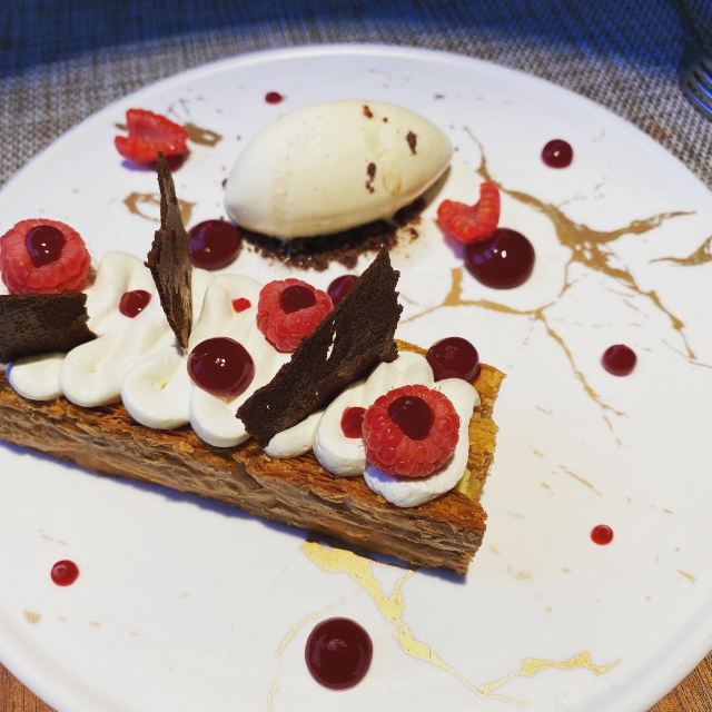 香草烤鸡,香煎鸭胸配波特酒酱汁,经典勃艮第红酒炖牛肉,澳洲M5和牛菲力,秃黄油烩饭,法式传统千层酥,干式熟成澳洲M9和牛西冷,露杰鸭肝卷,炭烤5年生朝鲜扇贝,澳洲M7和牛菲力,干式熟成湛江鸡,鸡油蒸东海大黄鱼,炭烤布列塔尼蓝龙虾,草莓鹅肝慕斯,澳洲M9+和牛西冷,栗子蒙布朗,鲜味蘑菇轻煎鹌鹑蛋西班牙香肠,宇治抹茶歌剧院,加拿大扇贝配苹果樱桃萝卜,三文鱼香橙薄片,餐前面包,新西兰羊排,焦糖烤布蕾