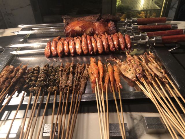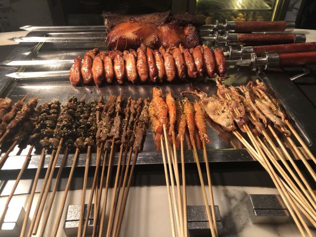 羊肉串,羊肉筋,疙瘩汤,烤鸡翅,烤蒜香茄子,烤馒头片,土豆,骨肉相连,牛板筋,鱼豆腐,肉筋,烤蘑菇,烤馒头,羊蝎子,烤茄子,土豆片