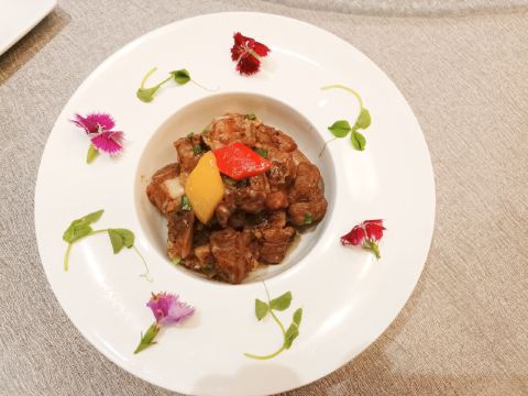 黑椒蒜片牛柳粒,紫金酱蒸凤爪,龙井虾仁,虾饺,榴莲酥,蛋挞,油浸笋壳鱼,羊汤配油酥饼,炸春卷肠粉,美味油酥饼,春卷,白灼基围虾,酥皮鸡蛋挞,牛肉丸