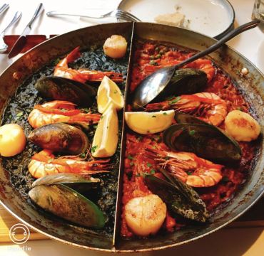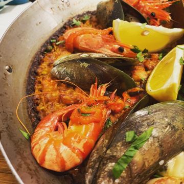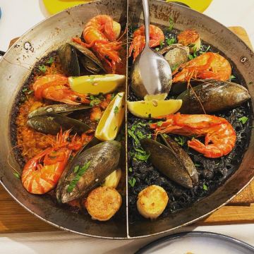 在胡同里的网红餐厅,名气大于味道。「双拼海鲜饭」一次能吃到两种口味,一面是传统口味,一面是墨鱼汁,上面的青口贝和虾都是一样「墨鱼汁海鲜饭」米饭是黑色的,视觉感觉没那么好,味道还行「西班牙海鲜饭」颜色很好看,内容也更丰富,加点柠檬去腥味道会更好「香煎鸡腿肉」鸡肉很软,有点微咸「卡布奇诺焦糖布丁」甜品,味道可以,卡布奇诺和焦糖味道更中和 [薄荷]环境: 座位摆设很拥挤 [服务铃]服务: 一般