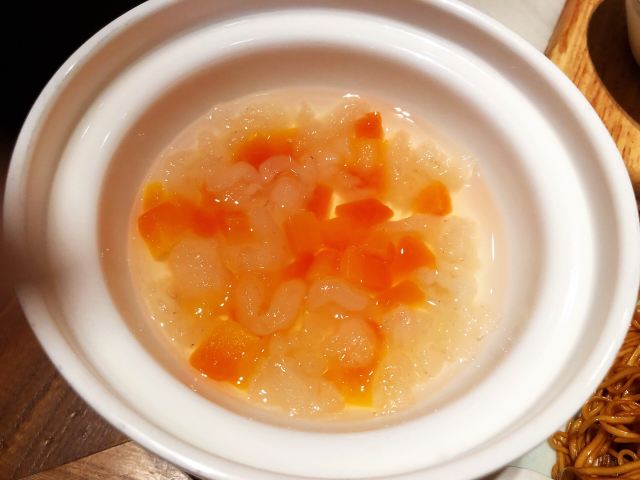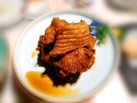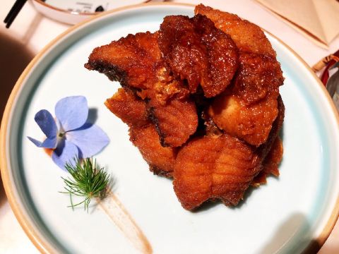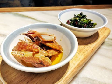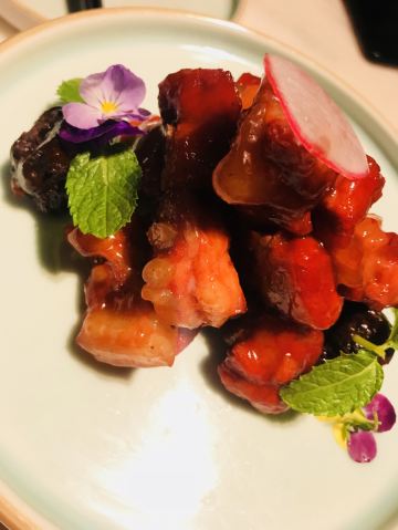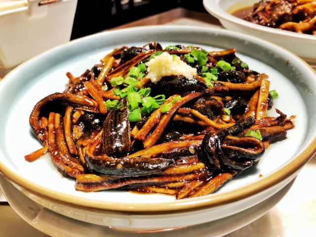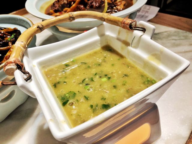 马小洒江南风的雅致环境和本帮菜,服务也还不错的,等位还给了精致的水果篮消磨时间。餐厅不大,座位略有些局促。 上海熏鱼,他家做的不是很出色,略干瘪没味道。 烤菜拼蟹钳,蟹钳朋友特别喜欢,用酒浸渍很提味,上海菜里面的醉蟹也是超级爱的一道菜。 响油鳝丝,份量正合适,味道上觉得我欠缺点黑胡椒的鲜味。 脆笋烧牛肉和蟹肉清炒芦笋,整体味道都还行,但是笋不是很嫩,品质算是一般吧。芦笋还是清脆爽口的。 朱桥甲鱼羹,对甲鱼其实有点抵触,不是很喜欢吃,不会这个汤羹做的挺好的,不会有什么怪味道,香菜碎正好丰富了口感。 葱油拌面, 他家的拌面味道不错,筋道,不怎么吃主食的朋友都妥妥吃下去半盘。