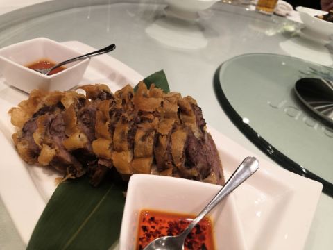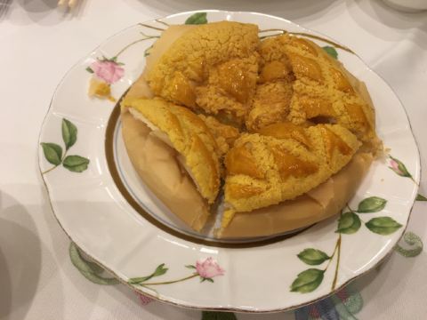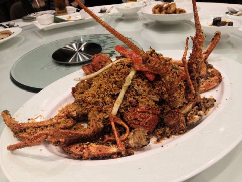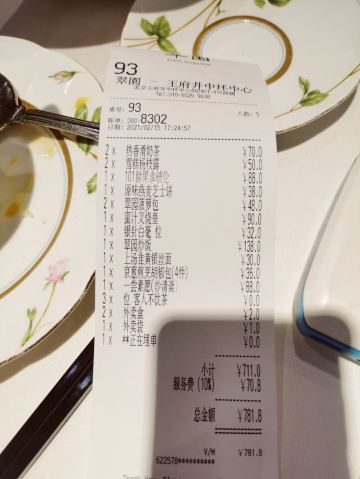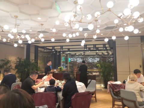 larry传说中的网红店。 徒步中山公园后走到这里,吃个丰盛下午茶,解决的是午饭和晚饭正餐。 [薄荷]环境: 在王府中环内,这是个香港置地的地产,整体港范儿十足,很人性化,也很精致。 翠园在四层,五点开餐,大概五点零五就没位置了。 徘徊在门口一会,在偏厅安排了近十桌,能够坐进去了,很幸运。两个小时出来的时候,排号八十桌了。 [服务铃]服务: 服务员是港腔,认真,细致,周到,专业,不过不算热情,其实我也不需要热情。所以服务给九点五分。 |101鲜果拿破仑^这玩意拍照是个好模特,看着就炫目,层层的酥脆夹杂各种水果,好大一摞,吃着渣渣四溅,有点尴尬,还是切开了放自己碗里吧。 |一尝素愿^ 这个素拼很抢眼,脆,新鲜,还很有味道,口感丰富。最赞。 |蜜汁叉烧皇^ 叉烧偏瘦,我喜欢,比太兴好很多,很香。 |京葱煎烹胡椒包^ 水煎包,有点点胡椒的辣,味道温和,口感软,个头有点小。 要了一杯白茶,低脂肪,味道香,色很好,而且耐煮。 |翠园菠萝包^ 这个菠萝包一般般,比深圳机场翠华的差点意思,虽然它也很好了。不是我的菜。 |翠园炒饭^ 这个炒饭是今天最佳的,价格也是最贵的,里面有虾仁瑶柱,个个精品,粒粒饱满入味,咸淡正好。 传统精美的餐具有仪式感,里面大厅很多人,厅堂两个柜子里陈列满了店酒。不知道如何,下次尝尝。 人均近两百,十个点服务费。 介于正餐和下午茶之间的一顿饭,很满足,环境很好。 七七八八点了不少,