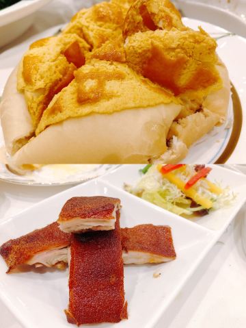 翠园堂弄片皮鸭(壹食),101鲜果拿破仑,翠园菠萝包,蒜片牛肉粒,即烧脆脆BB猪半只,脆脆BB猪,鲍,太雕玻璃鲜虾球,翠园雀笼点心,冶味豉汁蒸凤爪,老娘菠萝包,流沙包,冻杏仁豆腐,雀笼点心,豉汁蒸凤爪,招牌牛坑腩