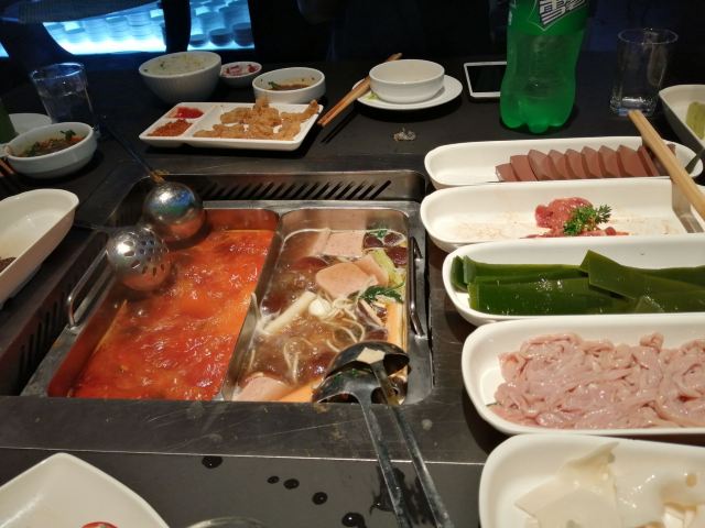 味道还可以,环境也不错,还挺高科技的,一进门就看见机器人在配菜,还挺好玩儿,服务一如既往的不错。夸了一句锅巴好吃,最后还送了几袋儿。但感觉桌子特别容易脏,全是油。五个人点了好多好多,最后吃的超级撑,晚上都没吃饭,生日果盘还不错,不仅送了火锅底料,还送了剩祝福和生日快乐歌,送了长寿面!