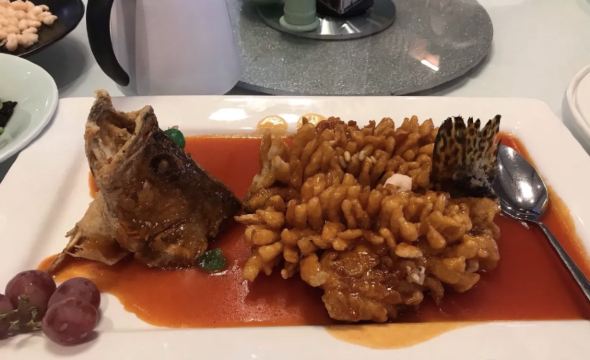 松鹤楼的环境应属于新中式风格,即有现代元素,又有古色古香的装饰。这里菜品的摆盘也很讲究、漂亮,这在菜单上就已经展示出来了。菜品的口味上是偏甜一些,松鼠桂鱼尤为明显。