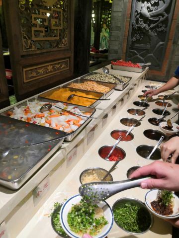 手撕大片毛肚,冰粉,斑鱼片,晾杆鸭肠,新西兰千层肚,麻辣嫩牛肉,大片脆毛肚,鲜鸭血,妈妈小酥肉,鲜鸭肠,手搓气泡草莓冰粉,红糖糍粑,自助小料,手切鲜羊肉,水果