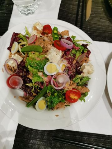 树袋熊半山湾西餐厅主要早晚餐自助的,周末人非常多,最好提前预订,不然要等位很久。首先,这个菜品呢,说实话非常一般,价格毕竟五星级里面不会便宜。沙拉说实话除了必胜客这种快餐,五星酒店西餐厅很少有用沙拉酱了,好歹都是油醋汁,整天水平就下来。餐前包凉的,一看就是放了很久很久的,完全不用心。别的菜品都是非常一般,中规中矩都勉强,对不起这个价格。 再说服务吧,首先周末理解人多,开始团的携程588套餐,图六服务员上来就说团不了要提前预订才行。但是里面规则完全没写完提前,其实是因为里面海南鸡饭没有了,所以说不能买。然后我看菜单和肉骨茶价格一样,换一下不就得了。图六服务员给我来了一句,后厨做不出来,我又不能给你变出来!!!这就是五星西餐厅的服务,自己业务不熟不会应变处理事情能力太差!给三星完全因为后来餐厅经理过来说明了一下,又有海南鸡饭了,并且孩子过生日,送的面和蛋糕,整体服务还是很好的。希望餐厅对服务员加强培训吧。