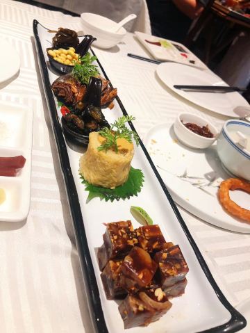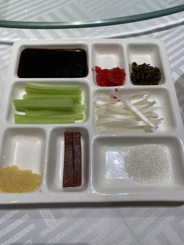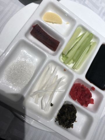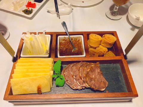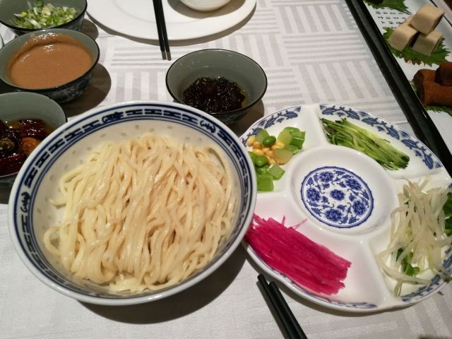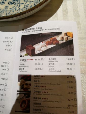 老北京炸酱面,宫廷杏仁豆腐,巧拌豆苗,宫保鸡丁,贝勒烤肉,蜜汁酥皮虾,小吃拼盘,豌豆黄,芥末鸭掌