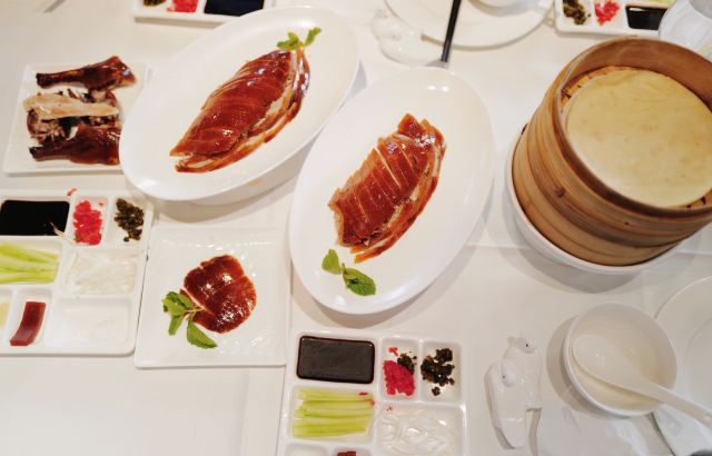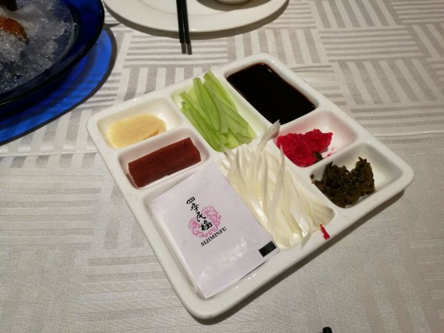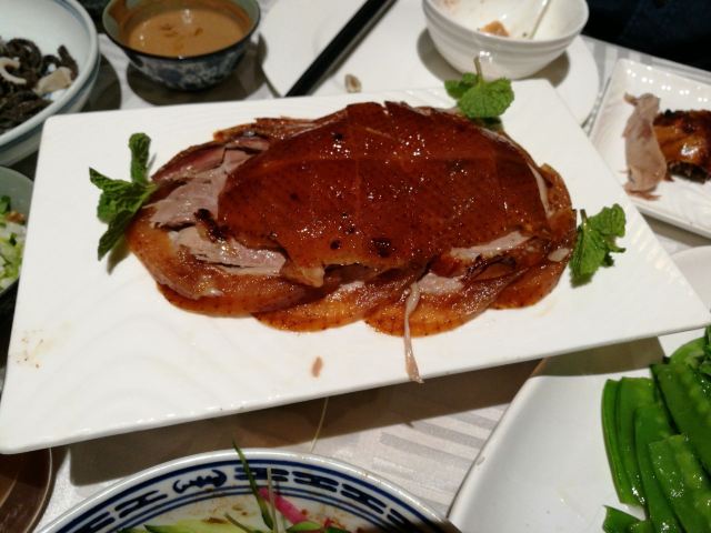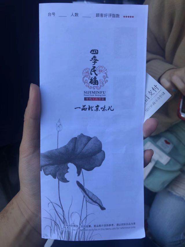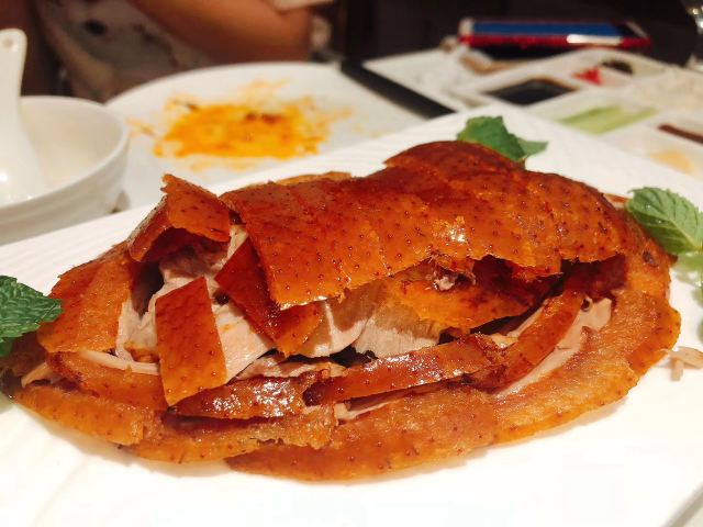 晓卜兔来北京必须尝尝烤鸭,直奔美食林上榜餐厅:四季民福烤鸭店; 这家店真心没让我们失望,来北京的亲们强烈推荐,价格亲民,人均100左右,美食精致,用料新鲜,味美价廉!排队等了1个半小时,门外一直到下午两点半都还是排队满满的人! 尤其是“烤鸭”,鸭皮酥脆入口即化,香而不腻; “豌豆黄”入口绵密,口留豆香,微甜而不腻; “杏仁豆腐”像奶冻一样,口中化开后,先是一股甜甜的桂花香充满口腔,紧接着是浓浓的杏仁味,最后是清凉的薄荷味,超级棒; “宫保鸡丁”鸡肉肉质鲜嫩,辣椒不辣却非常香,外面裹着一层甜甜的酱,非常棒! “豆汁”这个东西我们就是尝了尝...真的好臭,味道臭臭的、酸酸的,像酸了的臭豆腐,但不是坏了,就这个味,尝尝就好!