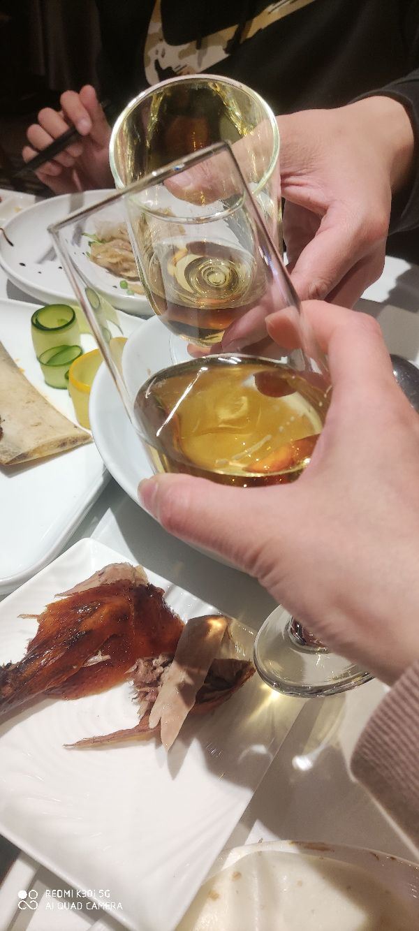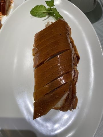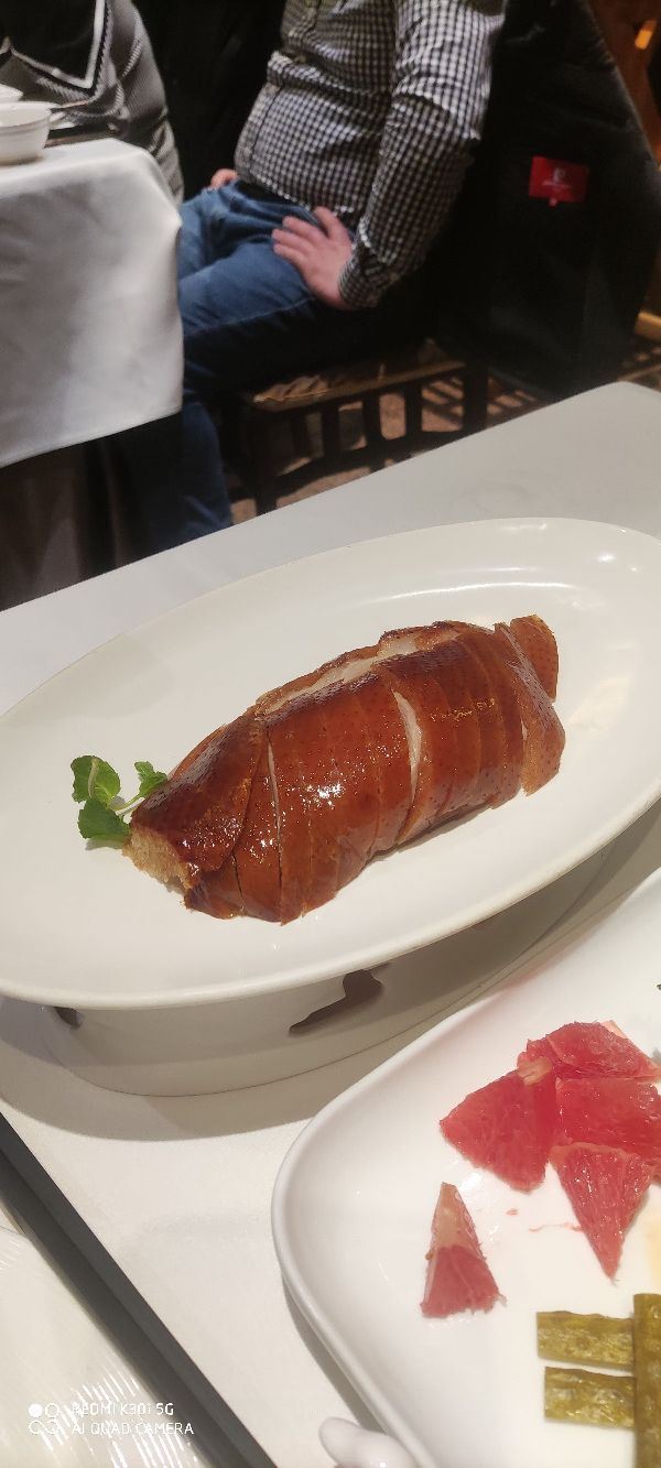 果汁分你一半✔四季民福烤鸭店(王府井灯市口店)是一家位于北京市东城区灯市口西街32号东华饭店1楼的烤鸭店。 四季民福烤鸭店吃烤鸭。大厅很整洁,很非常适合聚餐。🤤🤤 我们点了酥香嫩烤鸭。✨✨这是店里的招牌菜,烤鸭很正宗,小料很多。鸭皮很脆,鸭肉也很嫩,服务员会为每桌演示正确的卷饼步骤,很有仪式感。🥳🥳面皮包着鸭肉,一口吃下去,满嘴都是鸭肉的香味,但是有面皮和小料的存在,也不会显得特别油腻。😁😁闺蜜比较能吃辣,就点了个特色鸭血旺,很麻很辣!超级重口,但是里面的鸭血很嫩。建议能吃辣的小伙伴可以点一点。干炸小丸子也不错。✨✨丸子表面被炸的很酥脆,但里面却很软弱,一口一个吃的超级满足。 🥳🥳餐前还会送水果,我们去的时候送了冰镇荔枝。✨服务员都特别热情,点的菜品都很好吃,没有踩雷,很值得去哦。
