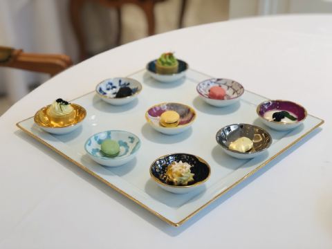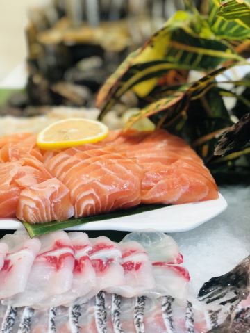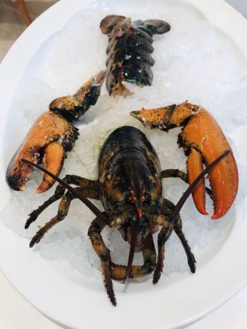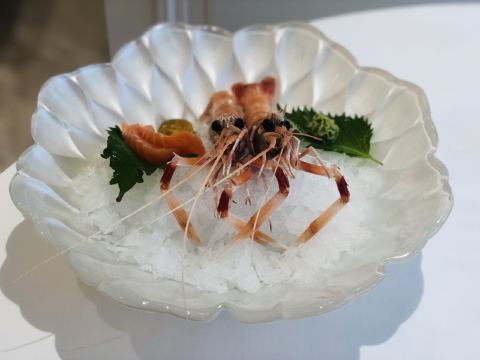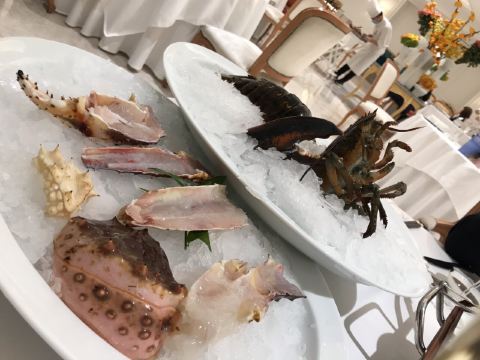 阿拉斯加帝王蟹,东星斑,法式鹅肝,鱼子酱烤鸭,鲜活鲍鱼,烤榴莲,三文鱼,鳌虾刺身拼盘,基围虾