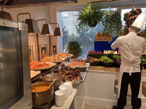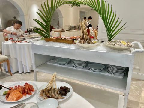 世贸大厦的京彩臻品餐厅,是京城知名的港式海鲜自助餐厅,主打特色打边炉,食材以稀有、新鲜著称,配搭西餐菜品,从装修到样式又偏法式菜系,是一家环境、食材超赞的融合自助西餐厅。他家每种食材都很棒,我最爱的还是波士顿龙虾、释迦果与青海牦牛舌。 【排队】去了几次都是提前订位,临时前往要看运气; 【环境】西餐厅的氛围,城市花园的环境,完全感受不到是自助餐厅; 【菜品1】 菜品名称:波士顿龙虾 价格:¥840元/位 ·海鲜最注重食材品质; ·不同于以往的海鲜自助,他们家用的是流动餐车循环供餐的方式; ·波士顿龙虾在一些套餐里属于限量,分量尚可,1个人吃刚好; ·当日空运的鲜活龙虾,不做任何处理,直接涮煮,大钳肉整个脱壳,很漂亮,肉汁鲜嫩回甜,品质超棒; ·遵从服务生建议的涮煮时间,能品味到龙虾最鲜美的口味; 【菜品2】 菜品名称:释迦果 价格:¥840元/位 ·释迦果只要应季、新鲜,怎么都好; ·从来没见过哪个自助餐厅提供释迦果的,即时是他家也不敢保证每天都有,我的运气不差,每次去都吃到了; ·水果餐车过来的时候,千万一次取足,我能吃掉一个; ·新鲜的释迦果,一分四瓣,外观冷艳,口感香甜软糯; ·最好是吃些咸鲜的肉食后再吃这个,感觉格外香甜; 【菜品3】 菜品名称:青海牦牛舌 价格:¥840元/位 ·牛舌的选材直接影响口感; ·不同于常见的牛舌,他们家用的是青海的牦牛; ·红肉餐厅推过,数量随意,我吃四盘无压力; ·鲜嫩红润的牛舌,涮煮变色即可食用,外观肉色清隽,口感外脆里嫩; ·蘸京彩推荐小料,能最大化放大牛舌鲜嫩的口感; 【服务】服务员态度超赞,全程帮剥壳及其它一切手工活,只专注吃喝就行,餐车轮转周期尚可,不会断档; 【适合】适合约会、宴请和小聚的时候来; 【对比】和其它海鲜自助餐厅相比,她家食材品质完胜、服务超出预期、环境如空中花园,尽享尊贵品质~; 【位置】在世贸大厦B座的三层;地处繁华CBD,可以看街景、夜景; 【交通】建议乘地铁前往,只需1号线大望路站C口向西南步行450米可达; 【优惠】用电子支付更方便;