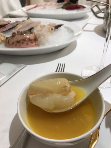momo1979闻名已久,结婚纪念日陪老公过来拔草,提前预订了餐位,工作日晚餐,人不算太多,我们6点到的时候大堂只有一桌客人。楼下车位充足,只是交通会略堵。 价位共两款,880和650,两个差别就是:莫桑比克玫瑰龙刺身、现杀活帝王蟹、西伯利亚鲟鱼籽烤鸭,三道菜品650价位的没有,但880价位多的这三道菜也是限量仅供一次。还有就是锅底单算,但目前5折,且酒水免费。最后结账离开的时候,服务员送了一箱褚橙,价格应该是100元左右的褚橙家庭版。 总体来说~就是吃过了,基本也不会再来了,因为确实像网上个别评论的,也就是个第六季plus版,什么现杀帝王蟹、现杀波士顿龙虾,都是营销的噱头而已。