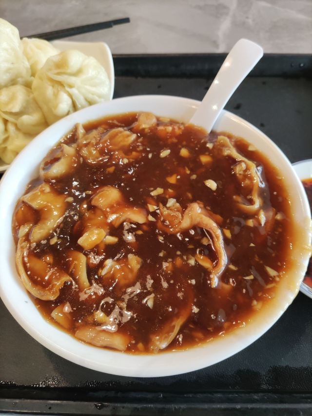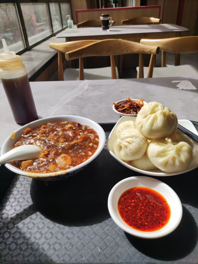 西单大叔明媚的阳光打在我的炒肝儿包子上—— 今天本来没想写评价,因为这家店来的次数太多了,从上个世纪末(1999年算上个世纪末没错吧)就开始吃了,当时还在路口东北角那一排临街平房里呢。那时候每一大早五点多就开始排队,排半条街,早上吃包子炒肝儿,中午晚上吃卤煮火烧,就卖这几样儿,也不做炒菜,但是真好吃,而且便宜,炒肝大碗两块小碗一块,包子一两5个,来三两就吃得饱饱的,当时在马路北边楼里上班,基本上是把这儿当食堂的。后来那一片儿成了违建了,给拆了,这个店也是辗转到最后搬进了现在这个楼里,虽然只是从原来的路口东北角搬到了西南角,但是味道没保持下来,现在店面扩大了,还加上了炒菜、烧烤、烤鱼,但是可以说现在做不出原来那个味儿了,而且以前最大的招牌菜卤煮火烧居然没有了,所以现在再来说实话更多的就是为了传说中的“情怀”了。 没有卤煮了,现在每次来都是大碗炒肝儿、二两包子,33块钱,这价格可就不是食堂的感觉了,不过现在在北京想吃包子炒肝儿是一家比一家贵,33块钱一大碗炒肝儿加八个包子还真算是便宜的了。好早以前就发现,炒肝儿的品控大不如原来,就是说好一次坏一次,有时候明显感觉不对,可有时候又发现居然能找到原来老店时候的影子,每回来满意不满意主要看运气,但今天这炒肝儿不错,稀稠度正合适,蒜的量正合适,肠儿煮得软烂程度正合适,只有肝儿切成了正方块儿,这个不太对,不光是形状的问题,主要这样一来肯定煮不透,吃起来果然硬了些。今天的包子也不错,卖相儿就好,吃起来里面能流出些许汁水,馅够紧,调味也可以。现在这辣椒油比原来辣了许多,原来是以香为主,可以多搁,配上醋,特别过瘾;但这回的辣椒油,太辣了,辣得直流眼泪,看来下次再放辣椒油的时候也不能凭经验了。不过总体来说今天对菜品是满意的,炒肝儿包子都可以,保持了一定的水平,比很多那种连锁的炒肝儿店水平要高。 本来没想写评价,可是正坐在窗边,吃的端上桌,发现阳光正好斜射在我的炒肝儿包子上,给这顿平平无奇的普通一餐增添了一道风景,而且正好使整个已经更贴合对于情怀的追寻,所以今天这条近千字的评价就是出于这几张照片吧。