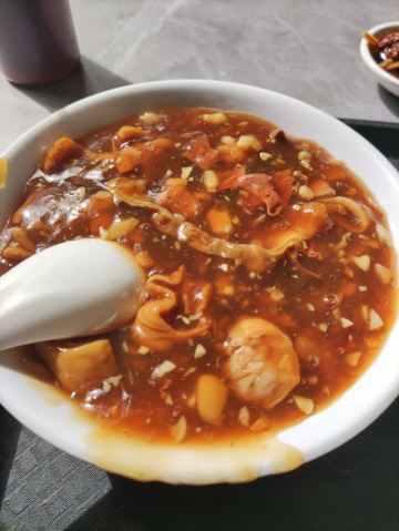 西单大叔吃了二十多年的老店,之前说过了,离开路口东北角那个“风水宝地”之后,就没有了之前的火爆场面,似乎再也找不到原来的感觉了。头几个月装修了,装修之后感觉人气没怎么提升,还是不温不火的。以前有两回吃得不太满意,主要是炒肝儿的水平非常不稳定,赶上哪天做好了就还能让人回想起老店的味道来,要是赶上发挥失准了那简直就不像是同一家店里做出来的。本来说以后不来这儿吃了,反正南城吃炒肝儿卤煮的店有很多,选择多得是,可是情怀这东西就像有一只无形的手总是拉着你隔三差五就想再去试试,希望去了就正好能赶上做得好的那锅呗,再说就算只是坐在店里就能回忆起自己年少、年轻时候在店里尽情享用美食的时光,所以还是忍不住想去。 今天还真不错,炒肝儿做得挺好,稀稠度合适,肠多肝少,蒜的量也恰到好处,符合我的口味。炒肝儿就得吃大碗,大碗20,小碗12,但是一大碗的量估计能装5个小碗,要是好这口儿的肯定得来大碗。吃炒肝儿就得配包子,6个包子10块钱,感觉现在这包子跟以前老店时候的包子不太一样,以前那是真香,一两五个小包子,但又不是小笼包那种感觉,一个肉丸的包子馅儿,油汪汪的,刚出锅端上来别提多香了,泡在炒肝儿里吃那是标准吃法。记得以前有一次,有俩大哥应该是第一次来,说太饿了,每人要一斤包子,老板说一斤吃不了,他们还不信,说一斤包子能有多少,一两2个,一斤才20个,非要每人一斤,结果人家是一两5个,一斤50个,冒尖儿的两大盘,四大盘包子摆桌上,给俩大哥都看傻了。 今天可以啊,大碗炒肝儿、6个包子,30块钱,味道也正常,又勾起了以前的一些回忆。店里空调开得挺足,凉快,也可能是因为人少,没坐几桌,基本上一看就是附近居民为主,有的大爷穿个大裤衩、跨栏儿背心、拖鞋,遛遛达达进来吃一碗炒肝儿就走了,估计都是二十多年的回头客。
