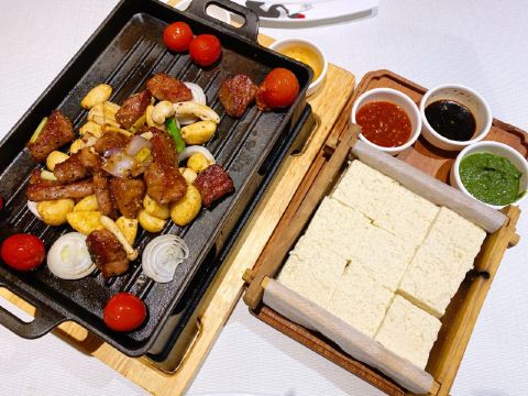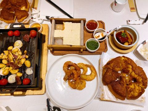 鱼头泡饼,芝士焗番薯,自制酸奶,椒盐茶树菇,自制有机泉水豆腐,东坡肉,家常饼,自助水果,金蒜牛小排,有机鲜鱼头(斤),鲜蔬大拌菜,醪糟酸奶,古法海胆炖老豆腐,手工现烙饼,浓汤鱼腐娃娃菜,红葱头焗清远鸡,芝士焗红薯,椒盐白玉菇,广式烧鸭