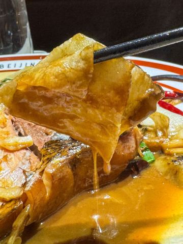 旺顺阁·不止有鱼头泡饼🐟 魏公村这家旺顺阁真的是超级大 预定了包间私密性不错 和好久不见的小伙伴边吃边聊[调皮] 「金蒜牛小排」每次必点 牛小排很嫩 配菜也都很喜欢 是一款不可错过的推荐菜🥩 「古法自制泉水豆腐」朋友推荐的 第一次尝试 三款酱料点缀 味道层次丰富 豆腐扎实 喜欢😘 「蜜汁脆皮虾」蜜汁味道甜甜的 虾也是开背处理 方便食用🦐 「慢煮鲜笋东坡肉」一例都被我吃掉了 下饭神菜🐷 「老北京糖油饼」份量十足 吃了还想吃又叫了一份[笑哭] [服务铃]服务:添水及时 午餐时段客人较多也并没有怠慢呀[得意]