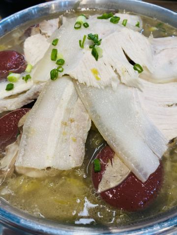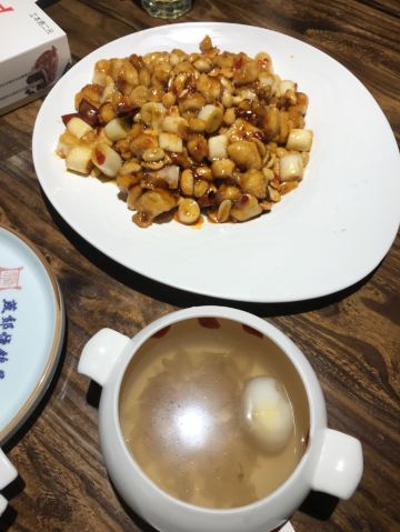 伊來又是一家“随便点”的饭店,更牛的是有些失传菜,不来他家都吃不着了,比如毛鸡蛋。 [薄荷]环境: 最早来的时候,那环境,啧啧啧,四海之内皆兄弟,五行八作,车行店脚牙,锣鼓喧天鸡鸣狗叫,就是一个港片里才能看到的据点。 后来三爷去了一趟,我都怀疑她走错地了,亭台轩榭小桥流水,比很多新派餐厅还漂亮,这是立地成佛了啊! 所以这次来,环境上没有太出乎意料,看着这么干净清新的环境,我都怀疑还能不能做出原来那个味儿了。 「煮毛蛋」 这个不是你有胆量就能吃,你还得会吃:蛋底磕个小口儿,把那一汪精华先嘬了再说。 把蛋底周边的壳剥开,然后从蛋尖处再磕个小口儿,把嘴凑上去这么一吹,“噗”,毛蛋呲溜一下子就出来了!这样剥出来的品相完整,色香味俱全! 沾点干料一口塞嘴里,拗口大嚼一通,美! 「鸽子酱」 用鸽子肉炒出来的辣酱,抹大饼、蘸毛蛋、拌凉菜、拌米饭都好,香辣咸鲜,万能灵魂蘸料~ [服务铃]服务: 环境优雅了,这服务意识也周全起来,态度也更职业了,装修增加了优点,摒弃了诟病,真好,现在就盼着能聚了,赶紧再去他家大吃一顿!