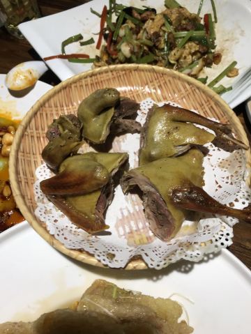 YanJiao Shao GeZi又是一家“随便点”的饭店,更牛的是有些失传菜,不来他家都吃不着了,比如毛鸡蛋。 [薄荷]环境: 最早来的时候,那环境,啧啧啧,四海之内皆兄弟,五行八作,车行店脚牙,锣鼓喧天鸡鸣狗叫,就是一个港片里才能看到的据点。 后来三爷去了一趟,我都怀疑她走错地了,亭台轩榭小桥流水,比很多新派餐厅还漂亮,这是立地成佛了啊! 所以这次来,环境上没有太出乎意料,看着这么干净清新的环境,我都怀疑还能不能做出原来那个味儿了。 「煮毛蛋」 这个不是你有胆量就能吃,你还得会吃:蛋底磕个小口儿,把那一汪精华先嘬了再说。 把蛋底周边的壳剥开,然后从蛋尖处再磕个小口儿,把嘴凑上去这么一吹,“噗”,毛蛋呲溜一下子就出来了!这样剥出来的品相完整,色香味俱全! 沾点干料一口塞嘴里,拗口大嚼一通,美! 「鸽子酱」 用鸽子肉炒出来的辣酱,抹大饼、蘸毛蛋、拌凉菜、拌米饭都好,香辣咸鲜,万能灵魂蘸料~ [服务铃]服务: 环境优雅了,这服务意识也周全起来,态度也更职业了,装修增加了优点,摒弃了诟病,真好,现在就盼着能聚了,赶紧再去他家大吃一顿!
