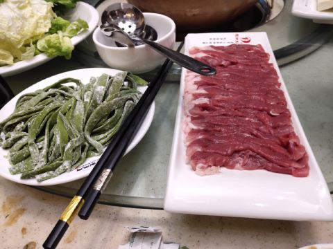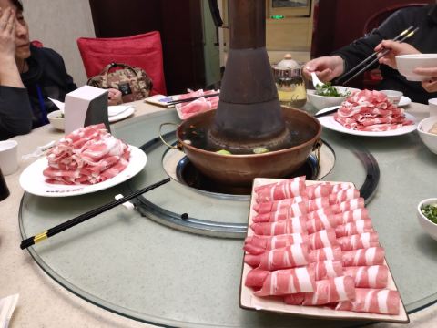 清明节来人太多,车位紧张,传统铜锅,味道还不错。