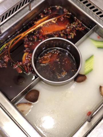 sunny99这家店在知春路上,附近小区很多,位置不错。店内没有电梯,就餐在二层,整个店面宽敞干净整洁,很舒适的感觉。座位底下设计了抽屉,可以存放衣物,防止串味。还提供了围裙和一次性手套。点了清汤和番茄锅的组合。开锅后先盛了一碗鲜香酸甜的番茄汤,太好喝了。小料台是自助式的,麻酱、海鲜酱、香辣酱一字排开,选择多多。还有水果、银耳粥、各式小凉菜可以任取。点了精品肥牛和羊肉,肉质很鲜嫩,毫无筋头巴脑。特别推荐鲜椒牛肉,腌制的非常入味,涮了吃特别嫩。另外高兴布袋也是必点,用豆腐皮包裹了鳕鱼肉,鸡蛋,鱼籽和的馅,吃起来海鲜味道十足,四个大个布袋很是实在。虾滑服务员帮着下的,特别新鲜的虾肉,鲜就一个字。午餐肉质量上乘,切得厚厚的。蒿子杆、豆腐、金针菇虽然普通,胜在新鲜、干净,让人吃着放心、舒服。最满意的还是服务,服务员特别有眼力见儿,周到热情,感觉直追海底捞。送的小甜品是两只椰奶冻,作成小兔子形状,好吃又好看。
