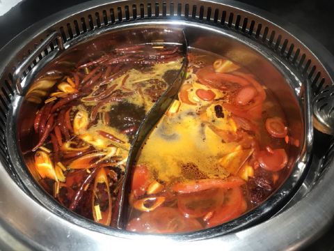 YoYo_4P0W2Q3U[环境]周五不到六点到的,还不需要排队,吃完的时候已经开始排队了。在东源大厦顶层 [服务]服务堪比海底捞,小哥哥特别热心,满脸笑容,服务周到 「招牌红白鸳鸯锅」到了楼下看到了锅底免费,意外的惊喜。省了不少银子。我要的最少辣,服务员小哥哥还叮嘱后台给我多捞点辣椒出来,特别贴心 「高兴鲜切牛肉」这个是不辣的那个牛肉,煮出来不像海底捞的那么软,但是味道还是可以。 「鲜椒牛肉」这个是加剁椒版的,真的是辣,涮完辣椒完全附着,真的辣 「麻辣牛肉」刚开始以为和别的店一样,看着辣实际不辣。我太天真了。煮出来是粉红色的。辣椒粉牢牢沾着,是好吃的,但是也确实辣度最强 「午餐肉」它家的午餐肉特别可以,全瘦,很香,我们点了两盘 「澳洲肥牛」澳洲肥牛真的很不错,煮的完全不老,特别进味,无敌第一推荐 「高兴布袋」布袋我也喜欢,感觉里面的口感特别像有鱼籽,白汤煮都超好吃 「荆州鱼糕」我一直都爱荆州鱼糕,看见有就点了,很嫩很滑,比鱼豆腐更好吃。不过可能还是有人吃不惯 「小麻团小烧饼」烧饼是咸口的。又酥又香又好吃
