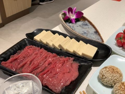 高兴布袋,芝士鳕鱼丸,高兴鲜切牛肉,极品鲜毛肚,手工鲜虾滑,芙蓉鸭血,手切鲜羊肉,海底捞,麻酱,鲜鸭血,冰粉,武大郎烧饼,麻团,鲜切嫩牛肉,特色梭边鱼,酸梅汤