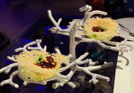 Gastro Esthetics at DaDong人称“大师傅”的大董老师应圈中好友陈黄鱼先生所托,精心设计了一席以黄鱼为主题的欢聚宴,全国各地美食圈的翘楚巨擘开年欢聚在大董美食学院里。 南新仓“美-大董海参店”2楼的大董美食学院堪称中国民间饮食文化交流的圣地,业内同仁以到此打卡为荣,而在此品鉴美食,更能领略一番大师傅的创新之道。 创新在当下成为一个热门词汇,但为什么要创新如何去创新,却依然争议未定,有人把创新当做业绩考核的方式,而在大董老师这样的行尊泰斗这里,创新又变成了一种常态。不仅仅是运营发展的需求,也是一个人不断实现自我迭代的修为。 许多人把创新当做了同质的复制或者简单的嫁接,而我以为,真正的创新是要以一种认知方法论的突破为内核,所有的形式不过是“真意”的外延而已。 大师傅的黄鱼宴开篇是一道“傅拥军牡丹黄鱼生”,据大师傅介绍,这是他在傅拥军先生的宴席上吃到了一道达配潮汕普宁豆酱的鱼生,获得了灵感启发,于是用红菜头汁调染爽韧的黄鱼脊肉,演绎出了一道国色天香的鱼生。大师傅急公好义,乐于提携同行,更尊重业内的知识创新,菜名冠于傅拥军先生的名字,便是一种对创作的价值尊重。 师承经典鲁菜的大师傅为黄鱼宴研发的两道菜却颇具江南的风韵,一道是醪糟蒸黄鱼,另一道则是借鉴了安徽臭鳜鱼的做法,酥炸半发酵黄鱼。 内地与沿海,塞北与江南,常常被认为是味觉无法逾越的天堑。而大董师傅这些年以一种躬身入局的姿态,多次走访东南沿海和江南水乡,在中国意境菜的“董氏美学”里,大漠孤烟与小桥流水,同书一卷。 而当晚真正把我惊艳的是一道“蓝纹芝士臭鳜鱼汁烧长海鲍鱼”。 这道菜真正做到了“破相”与“出圈”。 新鲜鲍鱼味道清淡,大师傅的妙处在于把蓝纹芝士和臭鳜鱼这“东西双臭”共冶一炉。所谓的“臭”,不过是蛋白质发酵过程中分解氨基酸时所释放的一些氨味,倘若驾驭得当,所谓的臭,不过是“香”的另一重镜像。 但长期以来。我们只在西餐的芝士拼盘上可以邂逅让人“爱憎分明”的蓝纹芝士,把西餐奶酪入馔中餐,这需要的不仅仅是食材特性的认知,更需要一种审美情趣的拿捏得当。 乳制品的氨基酸分子和鳜鱼不同,多种氨基酸的复合入味,不仅使鲍鱼的味型丰富了许多,更神奇地将鲜味放大了数十倍。 我喜欢这道菜的复杂深邃,激赏那种敢于打破形式障眼法的创新。美食的真意,天下大同,美美与共。
