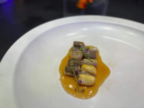 饭醉分子闫涛人称“大师傅”的大董老师应圈中好友陈黄鱼先生所托,精心设计了一席以黄鱼为主题的欢聚宴,全国各地美食圈的翘楚巨擘开年欢聚在大董美食学院里。 南新仓“美-大董海参店”2楼的大董美食学院堪称中国民间饮食文化交流的圣地,业内同仁以到此打卡为荣,而在此品鉴美食,更能领略一番大师傅的创新之道。 创新在当下成为一个热门词汇,但为什么要创新如何去创新,却依然争议未定,有人把创新当做业绩考核的方式,而在大董老师这样的行尊泰斗这里,创新又变成了一种常态。不仅仅是运营发展的需求,也是一个人不断实现自我迭代的修为。 许多人把创新当做了同质的复制或者简单的嫁接,而我以为,真正的创新是要以一种认知方法论的突破为内核,所有的形式不过是“真意”的外延而已。 大师傅的黄鱼宴开篇是一道“傅拥军牡丹黄鱼生”,据大师傅介绍,这是他在傅拥军先生的宴席上吃到了一道达配潮汕普宁豆酱的鱼生,获得了灵感启发,于是用红菜头汁调染爽韧的黄鱼脊肉,演绎出了一道国色天香的鱼生。大师傅急公好义,乐于提携同行,更尊重业内的知识创新,菜名冠于傅拥军先生的名字,便是一种对创作的价值尊重。 师承经典鲁菜的大师傅为黄鱼宴研发的两道菜却颇具江南的风韵,一道是醪糟蒸黄鱼,另一道则是借鉴了安徽臭鳜鱼的做法,酥炸半发酵黄鱼。 内地与沿海,塞北与江南,常常被认为是味觉无法逾越的天堑。而大董师傅这些年以一种躬身入局的姿态,多次走访东南沿海和江南水乡,在中国意境菜的“董氏美学”里,大漠孤烟与小桥流水,同书一卷。 而当晚真正把我惊艳的是一道“蓝纹芝士臭鳜鱼汁烧长海鲍鱼”。 这道菜真正做到了“破相”与“出圈”。 新鲜鲍鱼味道清淡,大师傅的妙处在于把蓝纹芝士和臭鳜鱼这“东西双臭”共冶一炉。所谓的“臭”,不过是蛋白质发酵过程中分解氨基酸时所释放的一些氨味,倘若驾驭得当,所谓的臭,不过是“香”的另一重镜像。 但长期以来。我们只在西餐的芝士拼盘上可以邂逅让人“爱憎分明”的蓝纹芝士,把西餐奶酪入馔中餐,这需要的不仅仅是食材特性的认知,更需要一种审美情趣的拿捏得当。 乳制品的氨基酸分子和鳜鱼不同,多种氨基酸的复合入味,不仅使鲍鱼的味型丰富了许多,更神奇地将鲜味放大了数十倍。 我喜欢这道菜的复杂深邃,激赏那种敢于打破形式障眼法的创新。美食的真意,天下大同,美美与共。