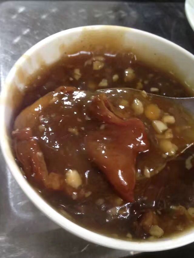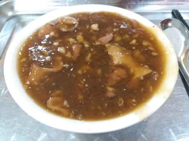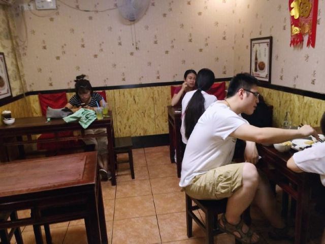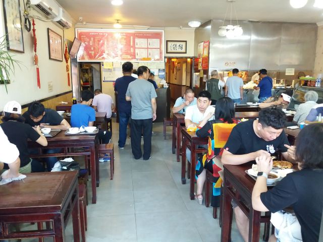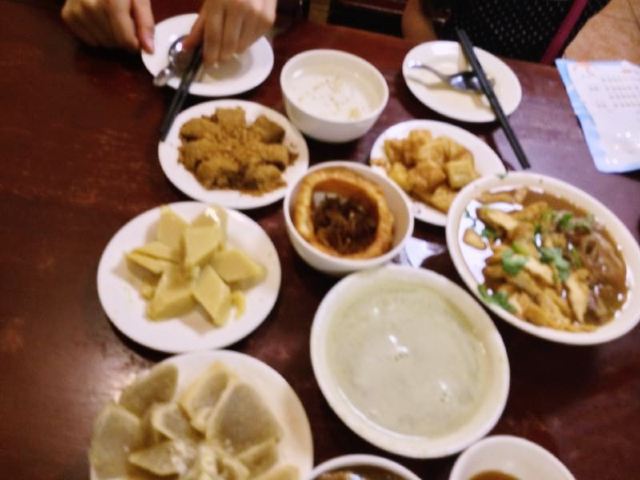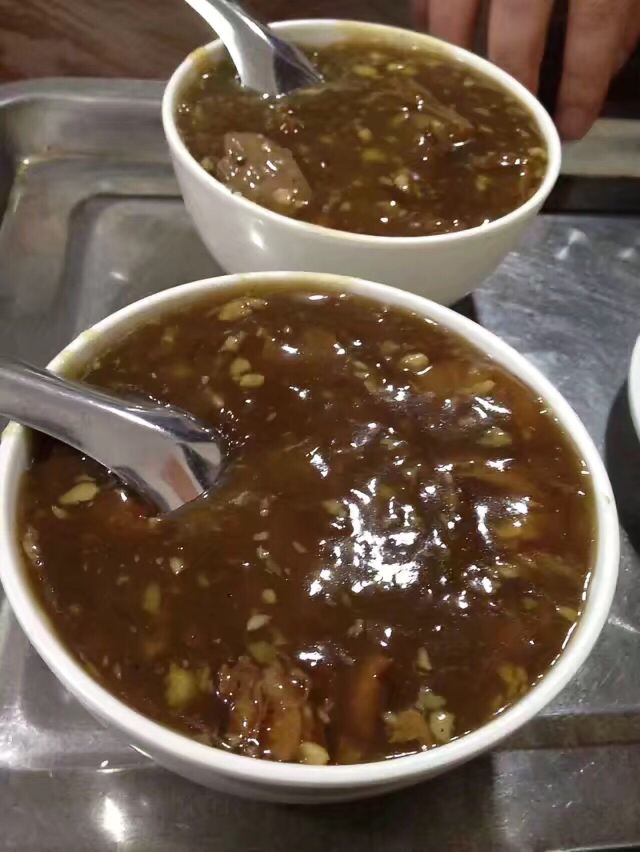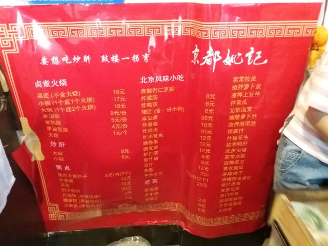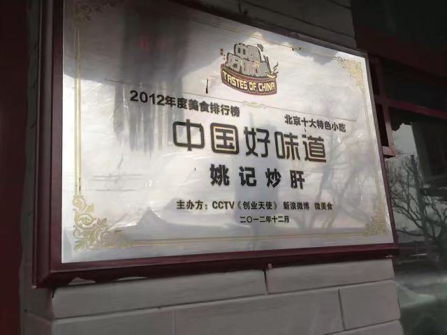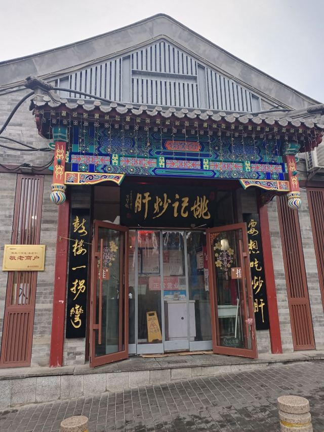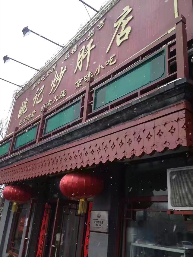 刁馋桃桃美食届有种说法:北姚记,南天兴!可见姚记地位之高。 姚记是老北京小吃,主打菜是炒肝。 炒肝是北京市的特色传统小吃之一,炒肝具有汤汁油亮酱红,肝香肠肥,味浓不腻,稀而不澥的特色。炒肝儿是由宋代民间食品“熬肝”和“炒肺”发展而来的北京小吃,以猪的肝脏,大肠等为主料,以蒜等为辅料,以淀粉勾芡做成的北京小吃。 “炒肝儿”是清末由前门外鲜鱼口"会仙居"的"白水杂碎"改进而成,白水杂碎以切成段的猪肠、肝、心、肺加调料用白汤煮就,由于不讲究佐料,制作简单,日久不受欢迎。于是店主将 心、肺去掉,易名“炒肝儿”,一时间在京味小吃中别树一帜。佐料是在熬热的食油中放入大料,炸透后放入生蒜,蒜变黄时立即放入适量的黄酱,炒好置于罐中备用。此外还要熬些上好的口蘑汤。原料、佐料备齐后,始制作炒肝儿。先将熟肠段放入沸汤,再放入蒜酱、葱花、芡同"姜"末和口蘑汤,然后将生肝条放入锅中,以淀粉勾芡,最后撒上一层砸好的蒜泥即成。“炒肝儿”是清末由前门外鲜鱼口"会仙居"的"白水杂碎"改进而成,白水杂碎以切成段的猪肠、肝、心、肺加调料用白汤煮就,由于不讲究佐料,制作简单,日久不受欢迎。于是店主将 心、肺去掉,易名“炒肝儿”,一时间在京味小吃中别树一帜。佐料是在熬热的食油中放入大料,炸透后放入生蒜,蒜变黄时立即放入适量的黄酱,炒好置于罐中备用。此外还要熬些上好的口蘑汤。原料、佐料备齐后,始制作炒肝儿。先将熟肠段放入沸汤,再放入蒜酱、葱花、芡同"姜"末和口蘑汤,然后将生肝条放入锅中,以淀粉勾芡,最后撒上一层砸好的蒜泥即成。 环境:很一般,夏天没空调,享受胡同小吃的接地气感觉。 服务:出菜很快。