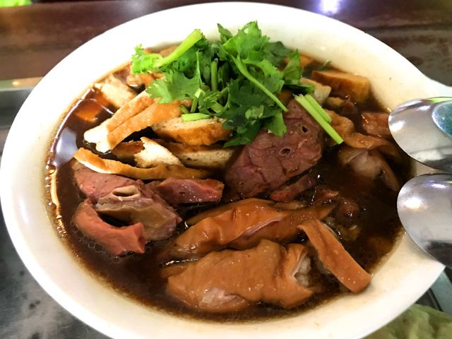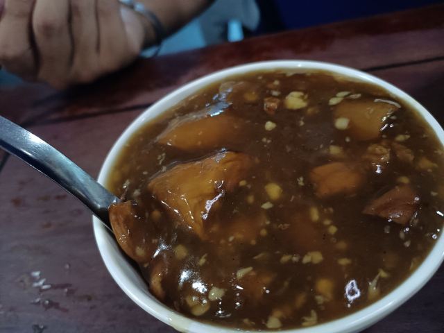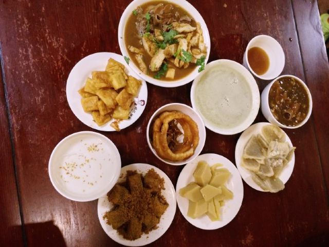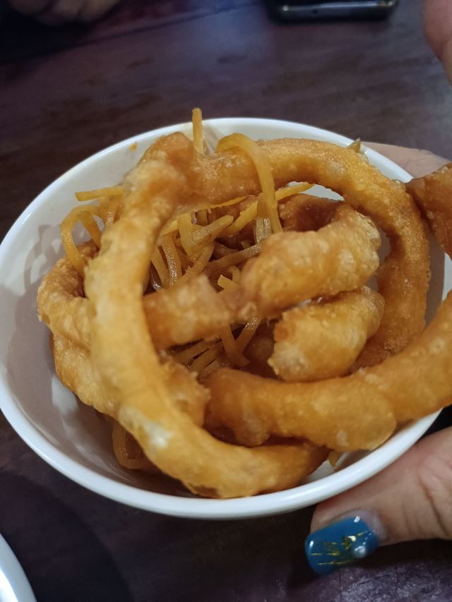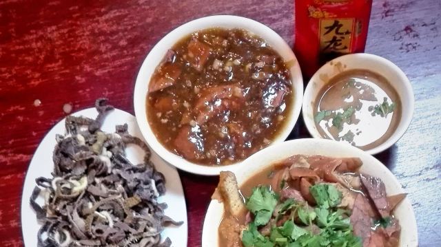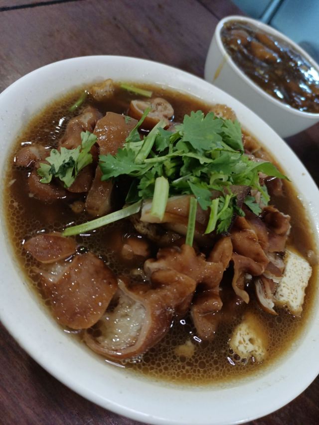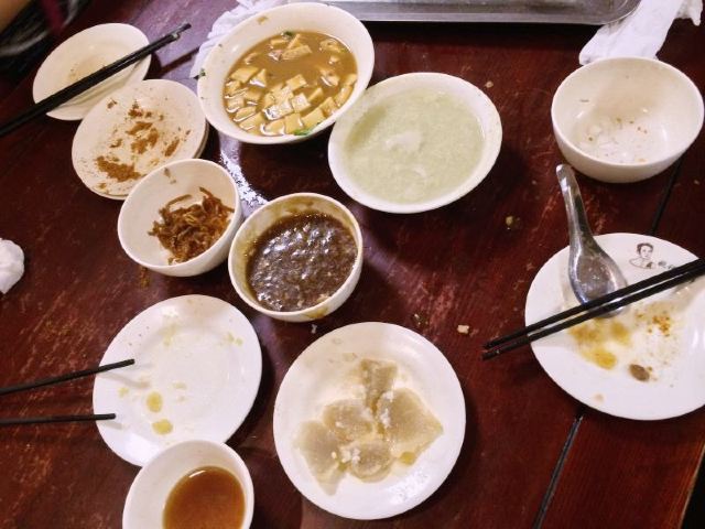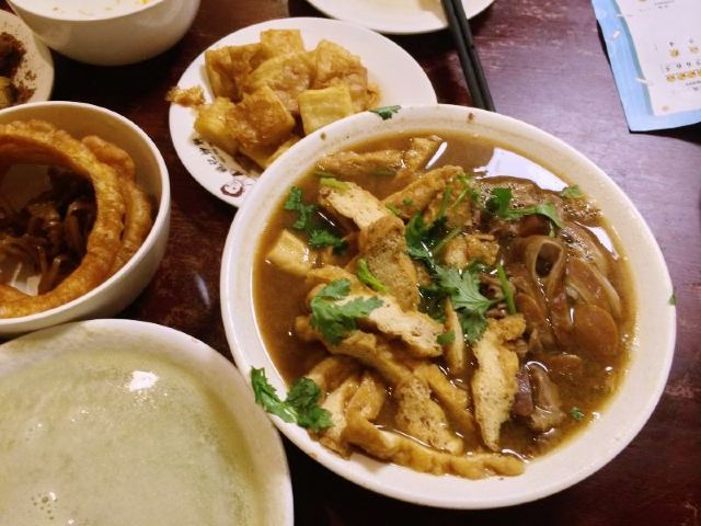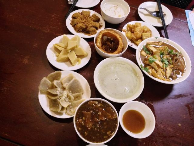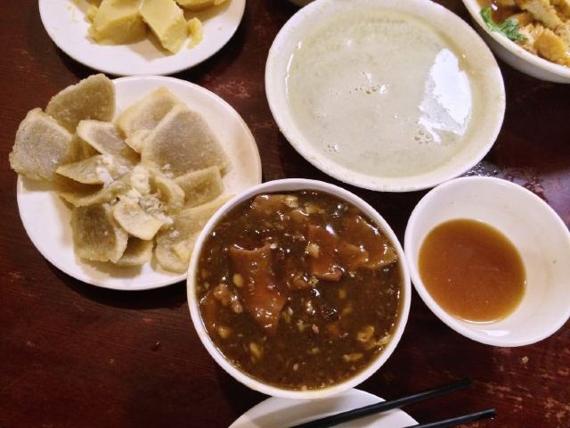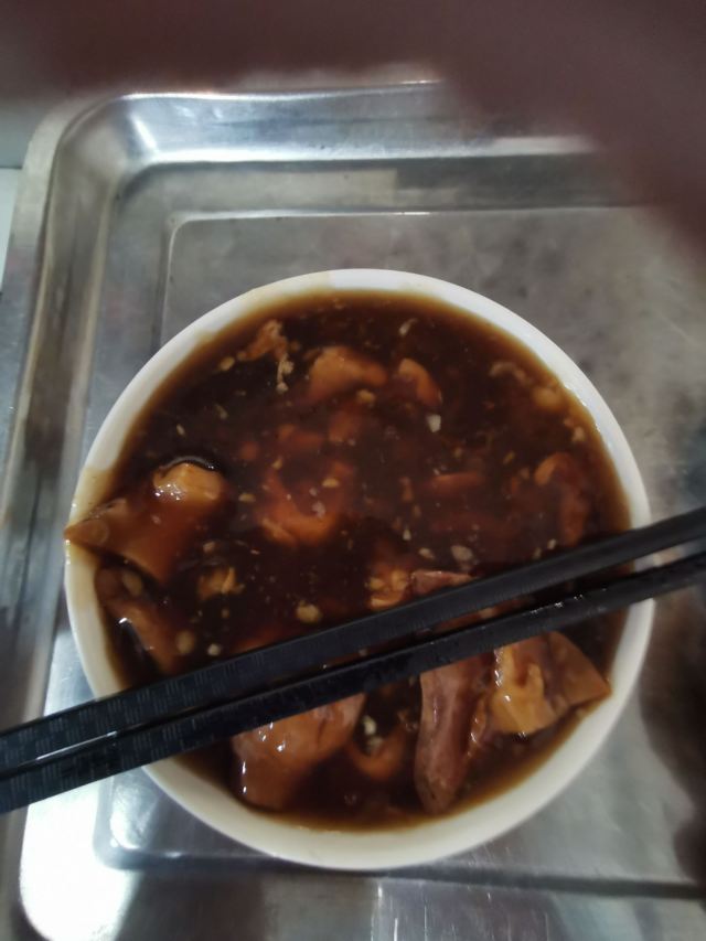刁馋桃桃美食届有种说法:北姚记,南天兴!可见姚记地位之高。 姚记是老北京小吃,主打菜是炒肝。 炒肝是北京市的特色传统小吃之一,炒肝具有汤汁油亮酱红,肝香肠肥,味浓不腻,稀而不澥的特色。炒肝儿是由宋代民间食品“熬肝”和“炒肺”发展而来的北京小吃,以猪的肝脏,大肠等为主料,以蒜等为辅料,以淀粉勾芡做成的北京小吃。 “炒肝儿”是清末由前门外鲜鱼口"会仙居"的"白水杂碎"改进而成,白水杂碎以切成段的猪肠、肝、心、肺加调料用白汤煮就,由于不讲究佐料,制作简单,日久不受欢迎。于是店主将 心、肺去掉,易名“炒肝儿”,一时间在京味小吃中别树一帜。佐料是在熬热的食油中放入大料,炸透后放入生蒜,蒜变黄时立即放入适量的黄酱,炒好置于罐中备用。此外还要熬些上好的口蘑汤。原料、佐料备齐后,始制作炒肝儿。先将熟肠段放入沸汤,再放入蒜酱、葱花、芡同"姜"末和口蘑汤,然后将生肝条放入锅中,以淀粉勾芡,最后撒上一层砸好的蒜泥即成。“炒肝儿”是清末由前门外鲜鱼口"会仙居"的"白水杂碎"改进而成,白水杂碎以切成段的猪肠、肝、心、肺加调料用白汤煮就,由于不讲究佐料,制作简单,日久不受欢迎。于是店主将 心、肺去掉,易名“炒肝儿”,一时间在京味小吃中别树一帜。佐料是在熬热的食油中放入大料,炸透后放入生蒜,蒜变黄时立即放入适量的黄酱,炒好置于罐中备用。此外还要熬些上好的口蘑汤。原料、佐料备齐后,始制作炒肝儿。先将熟肠段放入沸汤,再放入蒜酱、葱花、芡同"姜"末和口蘑汤,然后将生肝条放入锅中,以淀粉勾芡,最后撒上一层砸好的蒜泥即成。 环境:很一般,夏天没空调,享受胡同小吃的接地气感觉。 服务:出菜很快。