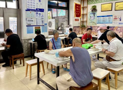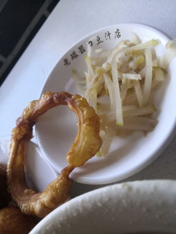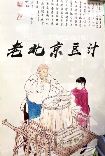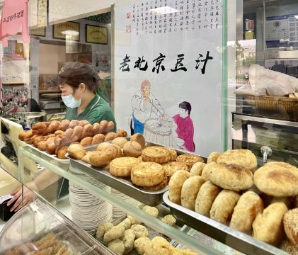 在天坛晨练的的老伙伴约我去老磁器口豆汁店吃早点。这是家老店了,供应的豆汁,炸豆腐,羊杂汤和大火烧,油饼,炸糕等很有特色。刚过七点,不大的店堂里,食客已入座,花上几元钱,吃得顺口舒服。据说很多老年人雷打不动天天在那里用早餐,临走带着给儿孙们买的油饼烧饼等。