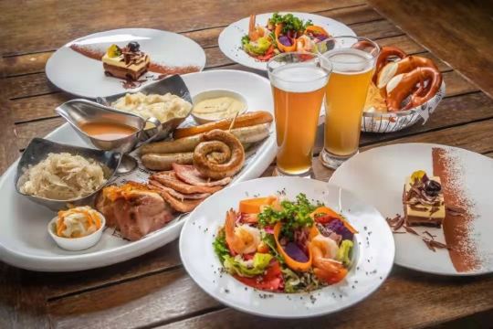 传统巴伐利亚餐厅,客人可以享受原汁原味的德国巴伐利亚菜肴。酿酒大师为食客保证啤酒的质量和新鲜度,确保食客能够享受最纯正的巴伐利亚风味餐。