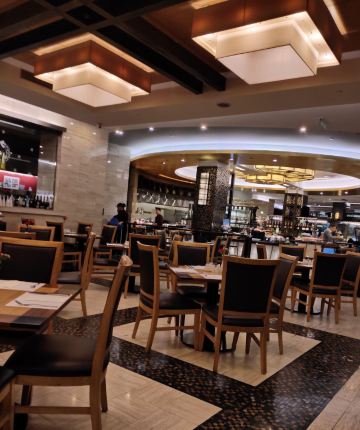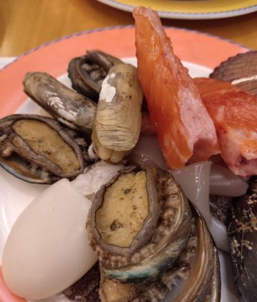 点单式自助,菜品种类不多,尤其是刺身在菜单上品种本来就很少,当日去被告知只有三文鱼。牛排、刺身、海鲜都很新鲜,鲍鱼是活的,味道也还可以,海鲜做法略单一,小料需自取,种类比较少。甜品每一道味道都很差,做的很粗糙,不像是大酒店做出来的,还不如外面普通日料店里的甜品。干白葡萄酒常温放的是温热的,冷藏的又太冰,温度把握很差劲。 最需要吐槽的就是服务,吃螃蟹等海鲜需要用手,但是不给准备湿巾或手套。也不主动给喝的温水,快吃完我们要水喝,竟然拿来滚烫的白开水,没办法又要了矿泉水兑一下,服务员还说我们应该提前告诉他要温水[捂脸] 四个人一桌点两个牛排、两个海鲜小火锅和小菜就放不下了,服务员无视,全靠我们自己先往旁边空桌上放。
