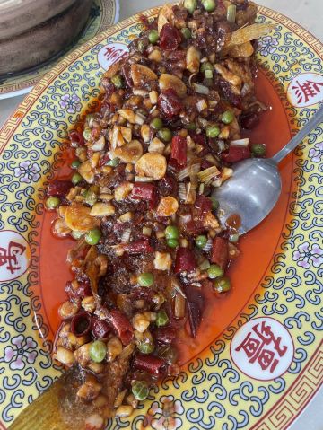 老字号餐馆,装修金碧辉煌,一进门就是标志性的大砂锅,带着老字号的气派和风范。这里以家常菜为主,砂锅白肉是当仁不让的最大特色。精品锅用五花肉配东北酸菜和粉条,肉味浓香,又特别下饭。九转肥肠、干炸小丸子也都是必点菜。