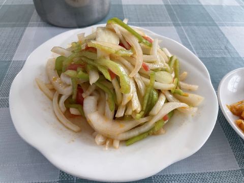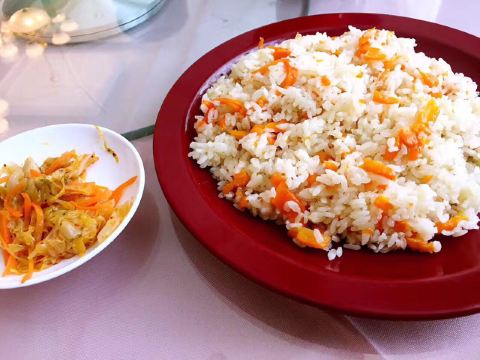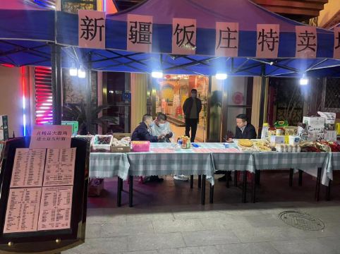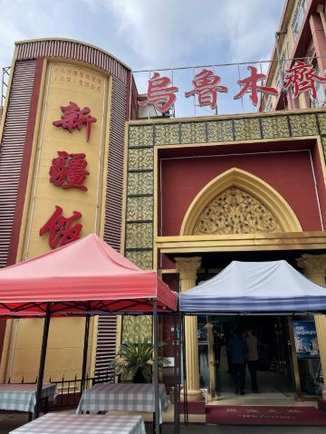 旅行的爱谁谁驻京办之旅——乌鲁木齐驻京办 附近办完事儿,在新疆饭庄和峨嵋酒家总店之间纠结,最终还是选了新疆饭店,吃炒菜还是人多一些能多尝几种。 【环境】 一进大厅就是非常驻京办的感觉,只是这里的大厅里摆了更多的桌子。来吃饭尽量趁早,晚了可能就要等位,买卖很好。 【服务】 直接找服务员小姐姐下单就行,但是如果是一个人来吃饭的话下单后马上就要结账,据说单人来吃饭有的趁服务员忙起来就逃单。 服务总体还可以,我来的时候人还不太多,有需求叫服务员就能马上过来。 「羊肉抓饭」量刚刚我吃的,油不算太大,油就一大块儿。抓饭是早炒好的,刚下单就端上来了,味道还可以,毕竟不如现做的好吃。 「新疆家常凉菜」不知道怎么特别辣,都有些烧胃了。 「胡萝卜汁」成品没得说,好喝。 「烤羊肉串」肥肉略多,味道不错。