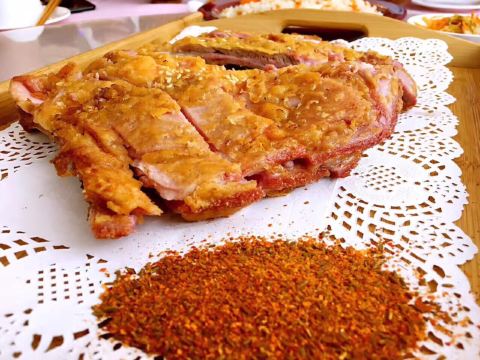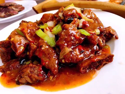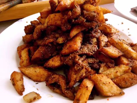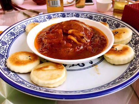 吃货腐天下北京·乌鲁木齐驻京办 【二疯拔草记in北京】 乌鲁木齐驻京办“新疆饭庄”是驻京办里很喜欢的餐厅:红柳肉串必须点,粗旷的柳枝串起大块的羊肉,枝木的香气随着炭火的炙烤慢慢深入羊肉中,再撒上孜然辣椒面,真正的撸串必须这样;浇汁夹沙,其实很像炸松肉,但是比之口感跟绵软,挂汁之后味道更回味;巴郎子羊排,做法有点鱼香口的感觉,酸甜的口味掩盖了羊肉的膻气,还挺特别;还有每次都点的烤包子,酸奶,抓饭,依旧喜欢;大盘鸡和馕丁炒肉不太知道味道,因为一个走神转眼间已剩空盘……炒烤肉,过油肉,都不错。像我这种需要控制饮食的人,吃吃素杂烩就好了~