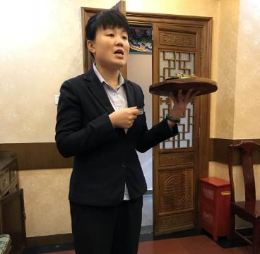 chinadesk1烤肉宛最著名的当然是烤肉,烤肉技艺纳入国家非文化物质遗产目录。我们享用了店里烧饼夹烤肉。很有仪式感的享用过程是,服务员端着铜盆盛着冒着香气扑鼻的烤肉介绍,然后将新出炉的芝麻烧饼的芯取出一部分,夹上烤肉,送到吃客的小盘里,配有黄瓜条和大蒜。大家迫不及待开吃,谈话都停下来了。烤肉鲜嫩有汁水,烧饼满口香气。吃了一半,大家开始交流口味。这烤肉是上等的,有烤肉技艺传承人制作。专选最嫩的部位,讲究刀工和拌料,果木烤制,肉质润滑,又有嚼头。吃罢这一道已经很饱,怪不得服务员事先告知,为了让大家多品尝其他菜肴,把烧饼的芯挖出了一部分。 烤肉宛精品烤肉限量供应。芫爆散丹也是清真菜中必点,量大,火候掌握得好。 糖咸卷果咸口和甜口的合一,细腻,有造型,味道合适。 这家烤肉宛的位置在北京儿童医院附近,那一带是全天拥堵地段,前往烤肉宛最好的交通是地铁1号线到南礼士路东北口出站,步行几分钟就到了。