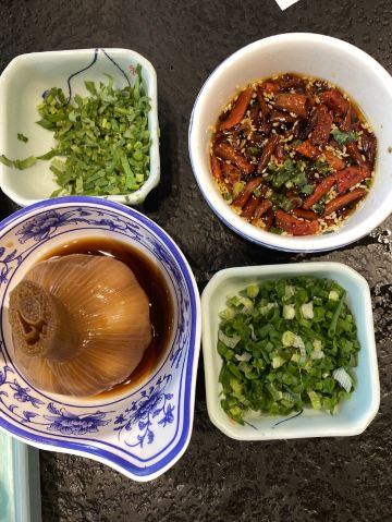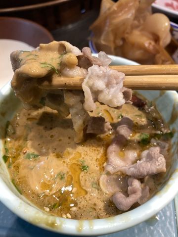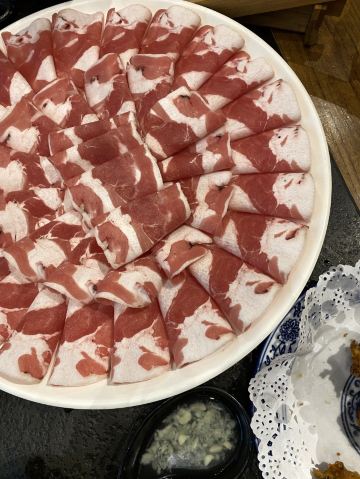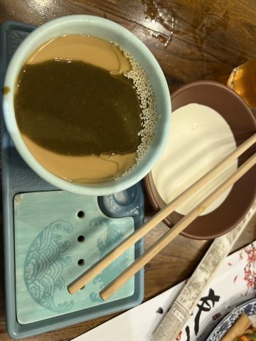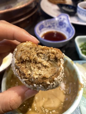 小坑顶着门四点半去的,可能是今天下雨🌧️人不太多。 「传统麻酱小料」吃了2碗,麻酱稠稀合适,非常香。 「芝麻烧饼」小小一个特别扎实,里边调料的味道很浓,能吃到十三香和花椒粉的味道。 「四仰八叉扎素丸子」据说必点,一定要趁热吃!特别酥脆! 「太阳肉」一份量不少,肉很软嫩。不知道点什么肉可以试试这个。 「牛羊四鲜」份量看这不大,但是手切都很厚实,是扎实的肉条,所以还是很有饱腹感的。可以先尝尝这个,好吃再追加喜欢的手切肉。 「水晶粉丝」量很大,粉丝裹上满满的麻酱,绝了![调皮] 「炸灌肠」这种炸物都推荐趁热吃,蛮香的,今天突然想吃这口了,跟别的店差别不大。 服务: 服务员💁♂️态度都很好,门口可以停车,先到先得。总之推荐来的一家涮肉。