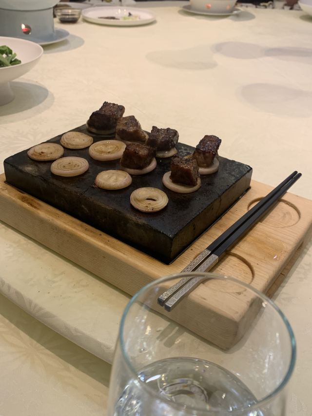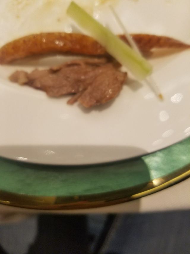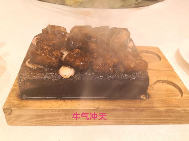 tumimi🕹地点:饭店门口不远处,有地铁6、9号线白石桥南站。 🚗停车场:门口停车场比较小,不能停太多车。开车进去,有引导员指挥开到另一栋楼的地下停车场。 🛎环境:高档、大气、时尚,装修风格,浓浓的中国🇨🇳元素,包间又宽敞又舒服,干净卫生。 🎈服务:包间收15%的服务费,服务人员大多数是朝鲜女孩,会说普通话,上菜速度挺快,端茶倒水都挺积极主动,席间也能及时换盘子,服务挺周到。 🎉牛气冲天 牛肉挺嫩,现场浇汁,冒着很大的热气,红红火火。 🎉挂炉烤鸭 烤鸭是店里招牌菜,鸭皮焦酥,沾着酱汁配黄瓜卷饼,挺好吃。 🎉石库门老酒烧肉 肉烧的过火,像腊肉的感觉。还有点甜中带苦,加了料酒,酒味大了。