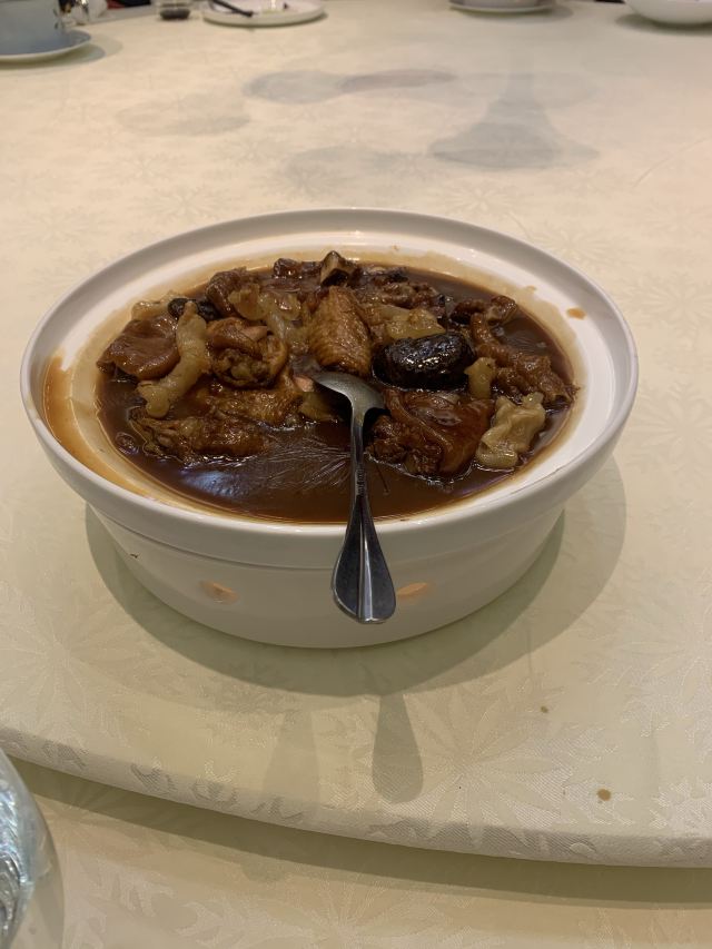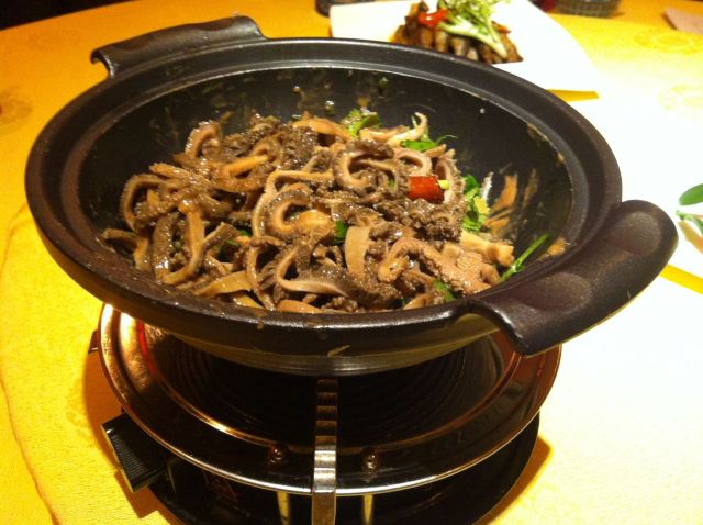Zheng YuanDa ZhaiMen (ShouTi Flagship Store)菜做的很有特色,牛气冲天摆盘很大气,368一份,风味海螺片里面是四角豆和螺片98一份;酒味黄鱼分量比较小腌比较入味398一分;珍菌汽锅鸡218一份,烤鸭268元,烤红薯76元一份,非常香糯超赞;水果拼盘168一份,有火龙果,香瓜,金桔,桂圆,西瓜,菠萝。肉汁萝卜76元一份,乳黄瓜蘸酱每根6元;私房豆腐79元,小豆菜69元,一次性筷子2元一副,另外收15[%]服务费。 店铺装修比较有特色。
