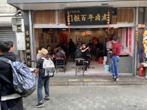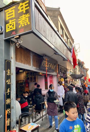门框百年卤煮在北京有很多家的分店,每一家的连锁店口味都差不多,经常会排队,非常受当地人和游客的欢迎,来北京必吃。