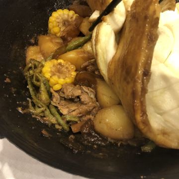 铁锅烀饼,锅包肉,铁板茄子,鲅鱼馅水饺,蓝莓山药,纸包羊肉,香煎九兔鱼,羊肉串,烤羊排,家常菜,素三鲜饺子,蒸饺,自榨果汁,海鲜南瓜盅