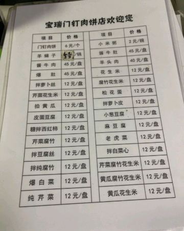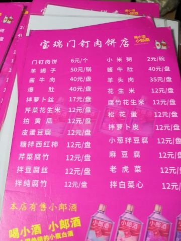 宝瑞门钉肉饼店的人气很旺,招牌的门丁肉饼口味地道,肉馅儿厚实香嫩,价格也很实惠。这里的小米粥、羊蝎子、麻豆腐、爆肚都很受欢迎,而且价格也相当实惠。